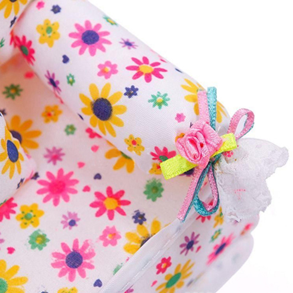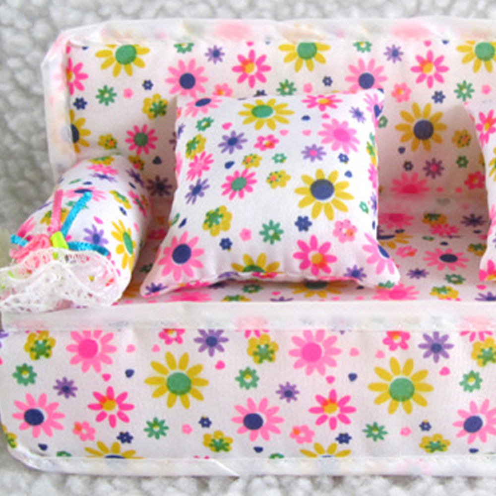 Mini Furniture Flower Soft Sofa Couch With 2 Cushions For Doll House Toys