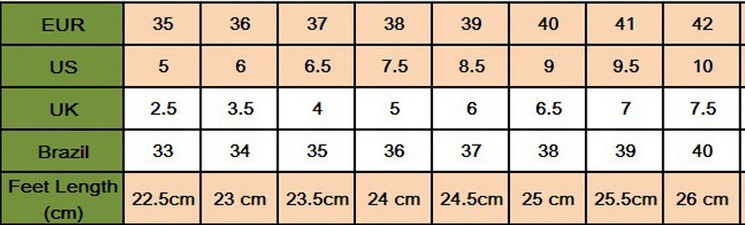 Shoes are standard size, please refer to the size chart below before you place an order.