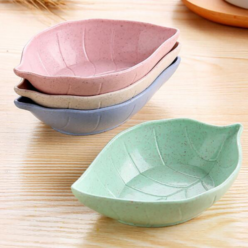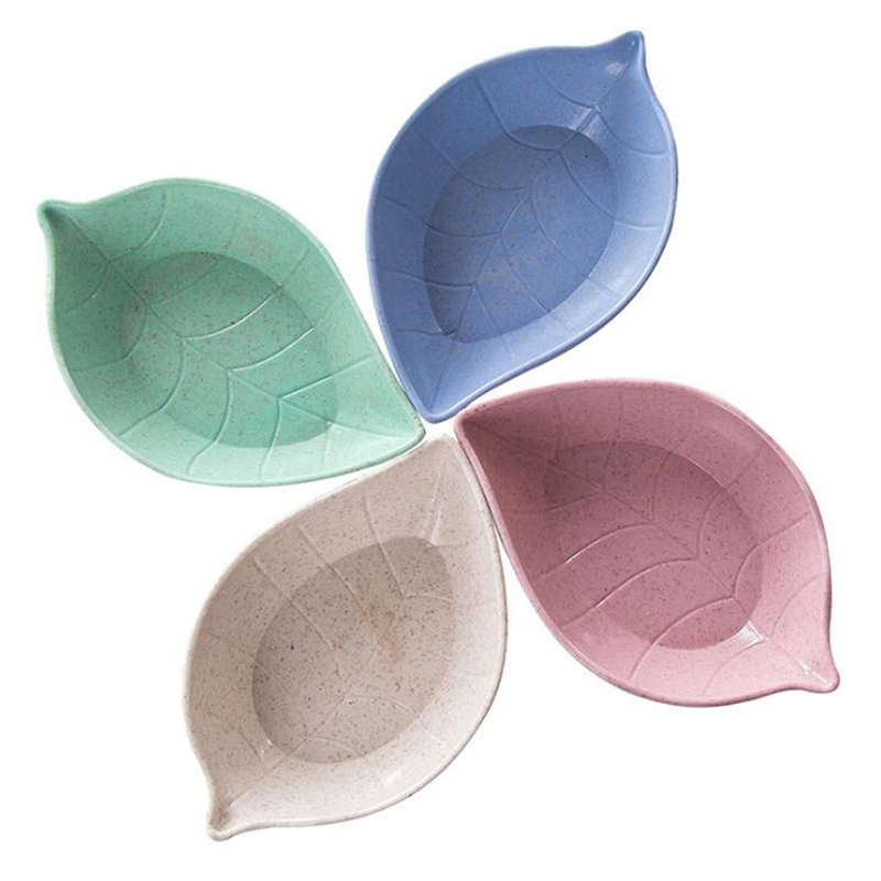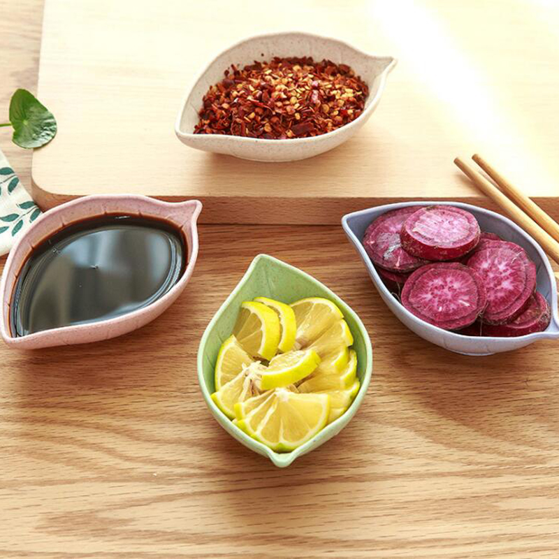 4Pcs Wheat Straw Leaves Small Dish Vinegar Sauce Seasoning Dish Snack Plate Storage Tableware