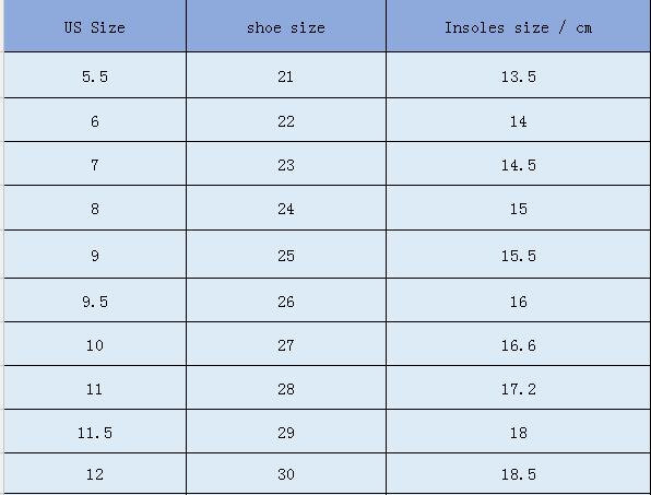 SIZE:21=13.5cm 22=14cm 23=14.5cm 24=15cm 25=15.5cm 26=16cm 27=16.6cm 28=17.2cm 29=18cm 30=18.5cm